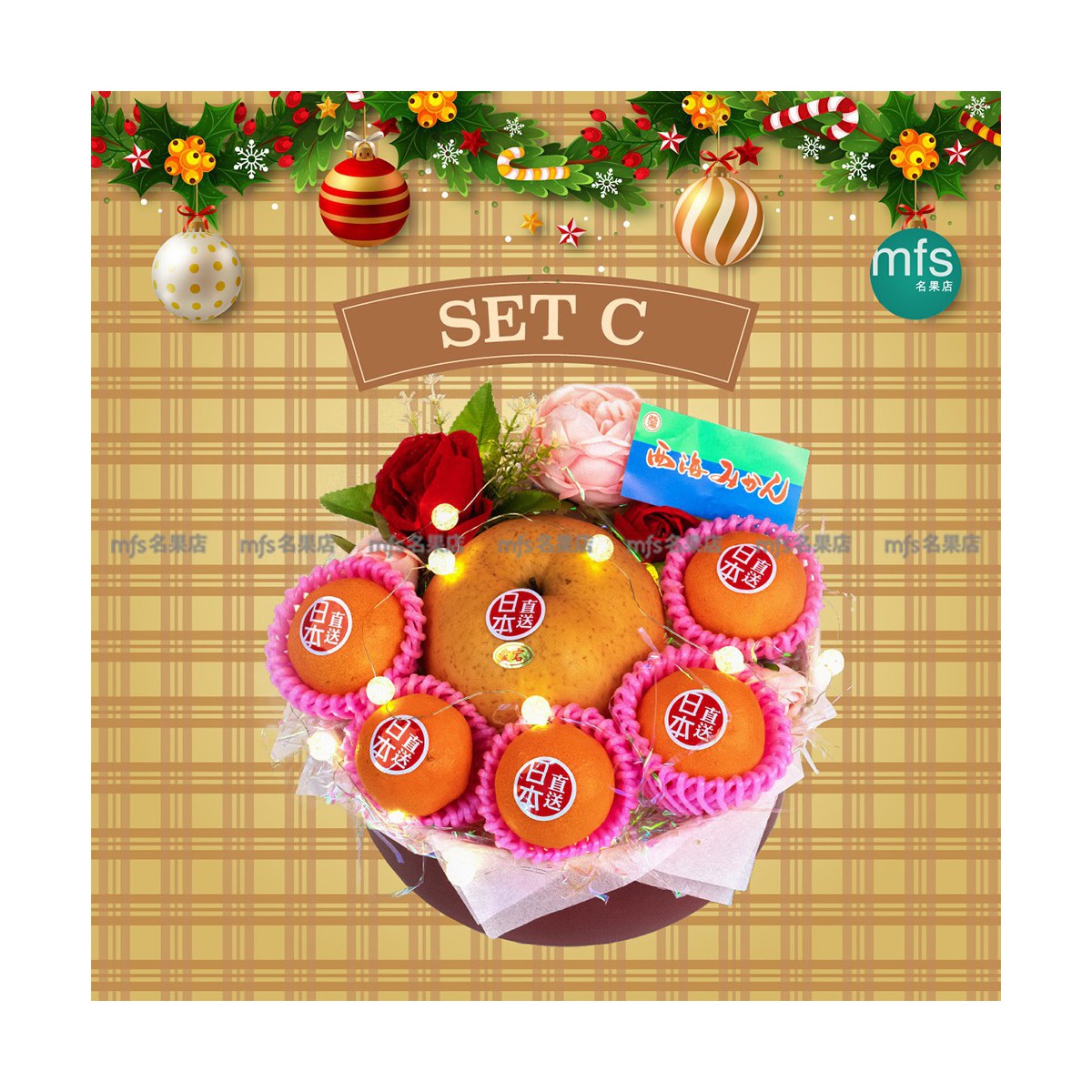 送禮專區 高級聖誕果籃 Set D $1,388.00 此價錢已包含以下生果、運費(非偏遠地區) 以及 心意卡一張(可於結賬頁選填) 1. 日本岡山縣極大愛岩梨 1個 2. 日本長野/山梨縣大束香印 1房 3. 日本士多啤梨 1碟 4. 日本富有柿 1個 5. 日本青森縣名月蘋果 4個 6. 美國夏威夷樹上熟木瓜 1個 7. 泰國正宗三角嘜金柚 1個 8. 日本青森縣經典蘋果汁 1 支 9. 日本長崎縣果肉啫喱 2個 10. 澳洲橙/和橙 2個 11. 台灣/澳洲蜜柑 2個 加入購物車